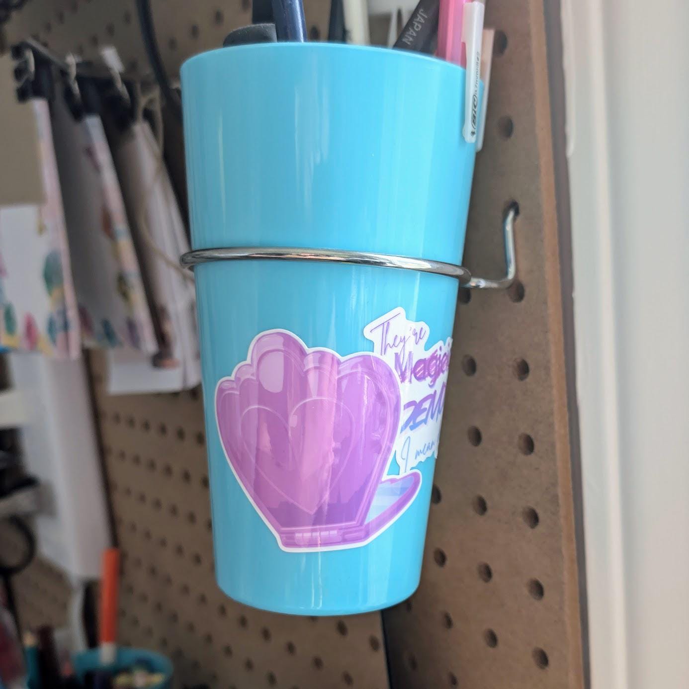 This sticker is designed by me and uses some canva and photoshop - hand made with vinyl sticker paper and laminated for extra protection. Water resistant (safe for handwash) but not dishwasher safe. May fade in extended exposure to sunlight