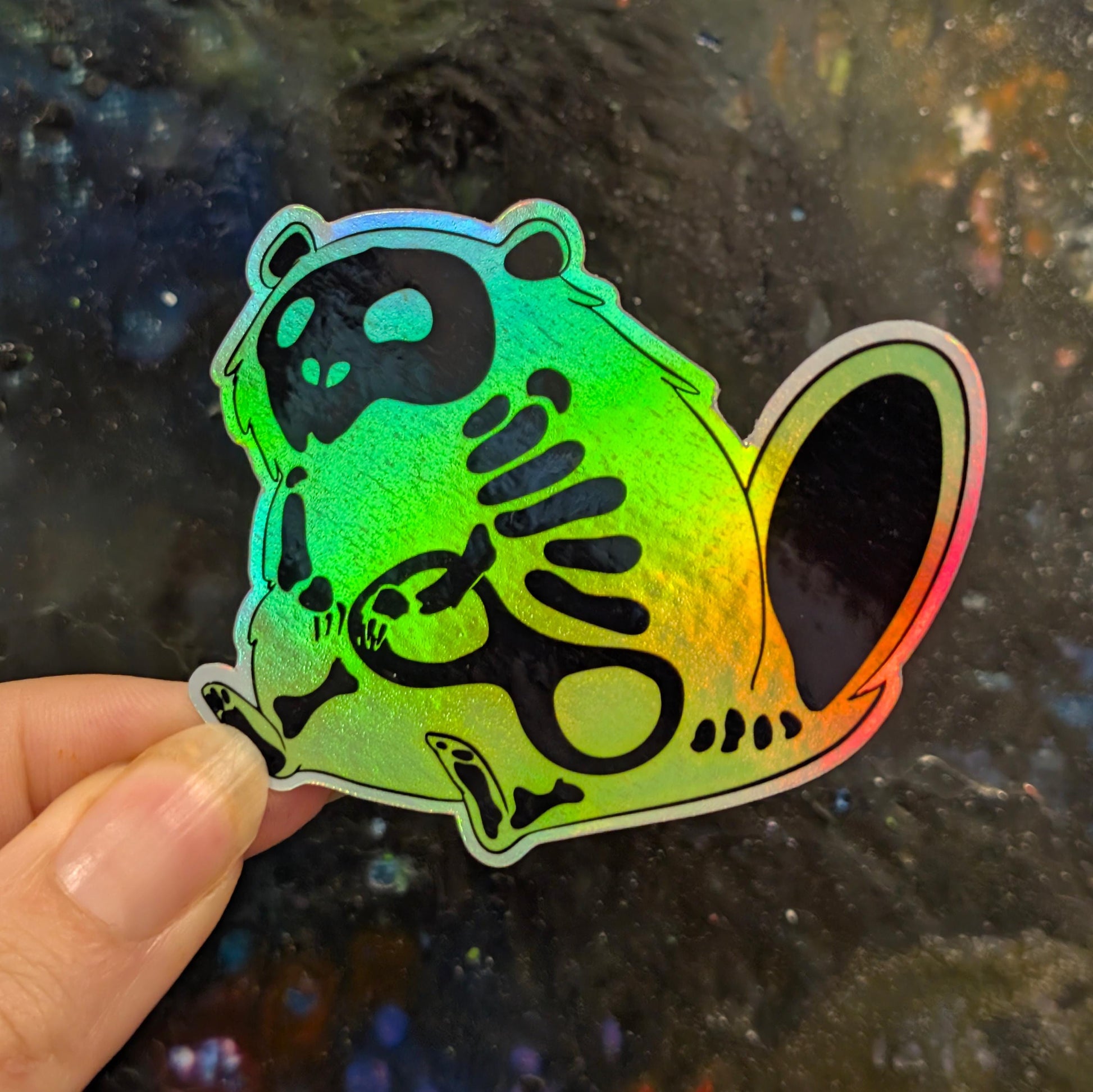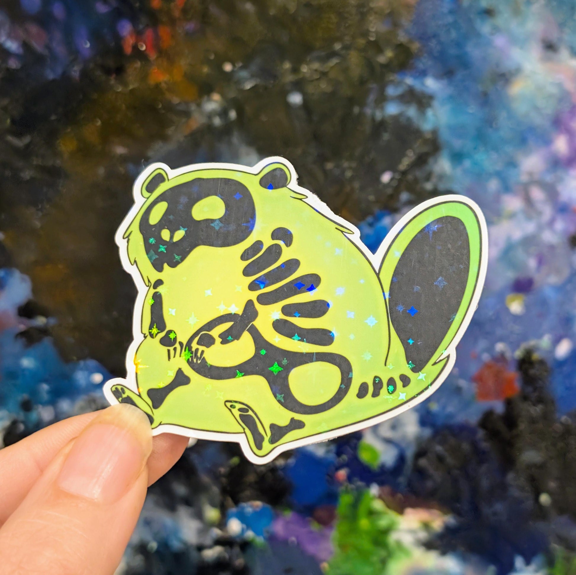 Uranium Beaver sticker | skeleton toxic beaver | sparkle water resistent holographic art